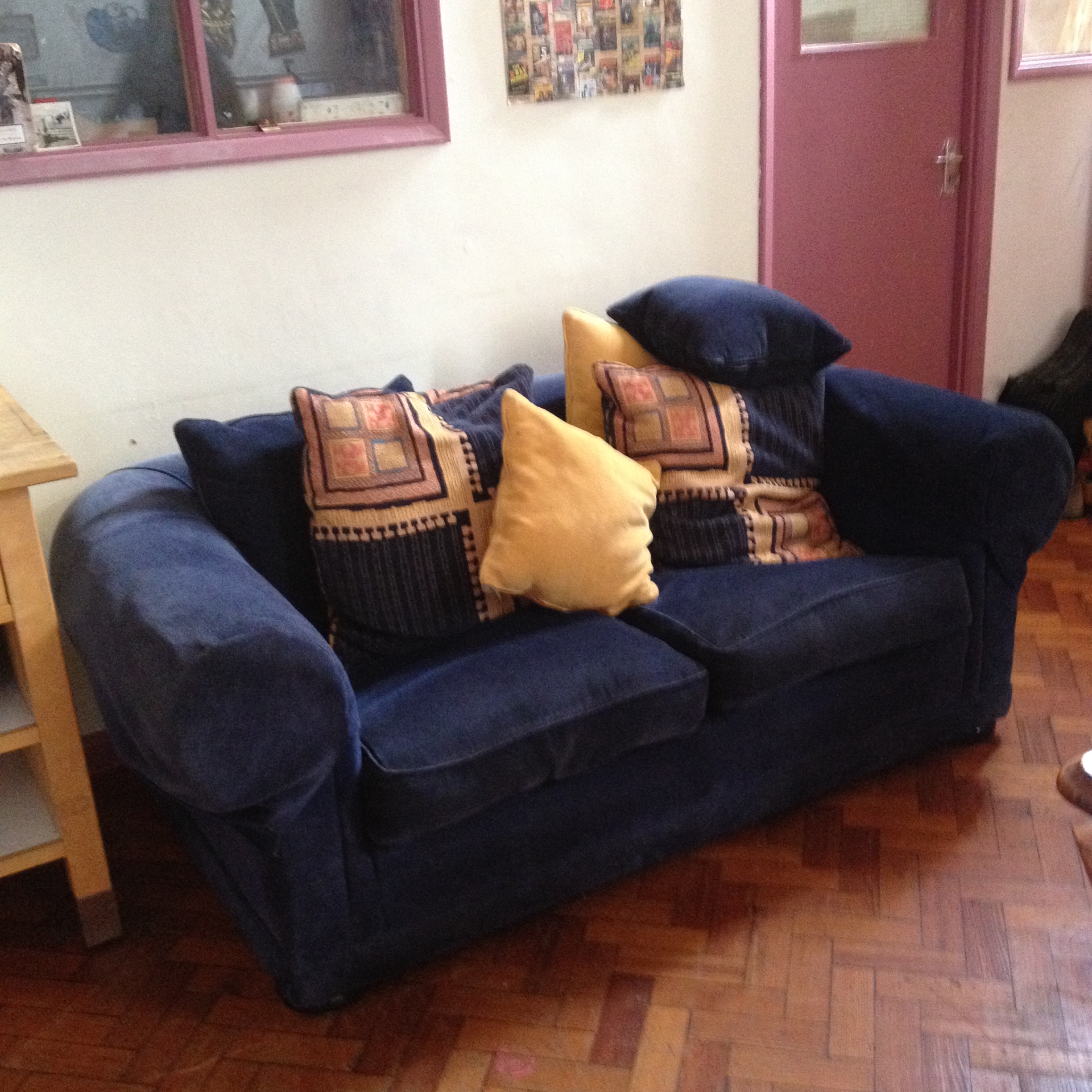 Trying to find a sofa that’s right for you can be a long and expensive process. However, if you look hard enough, sometimes the sofa will find you. David spied a bit of a find on Freecycle (one of our favourite resources) which might just fit a temporary bill in our new flat.