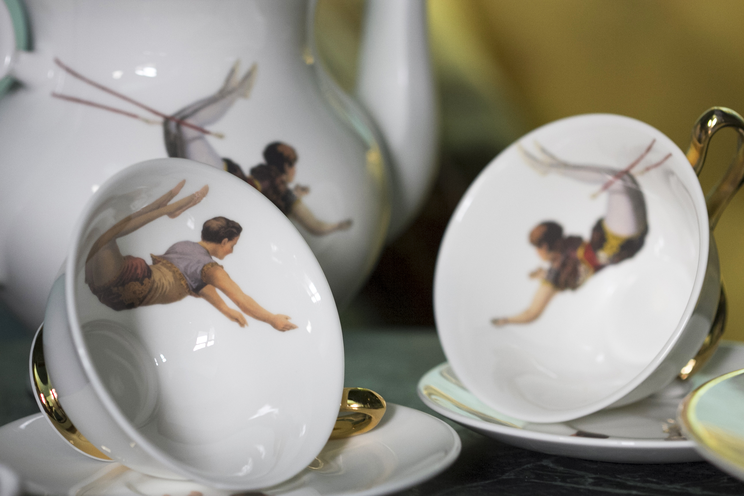 They’ve now launched a new collection, ‘Acts of Daring’, inspired by the old world glamour of life in the circus. Consisting of plates, teapots, jugs, cups and saucers, the collection features an array of soaring trapeze artists and tightrope walkers all of which tell a magical story.