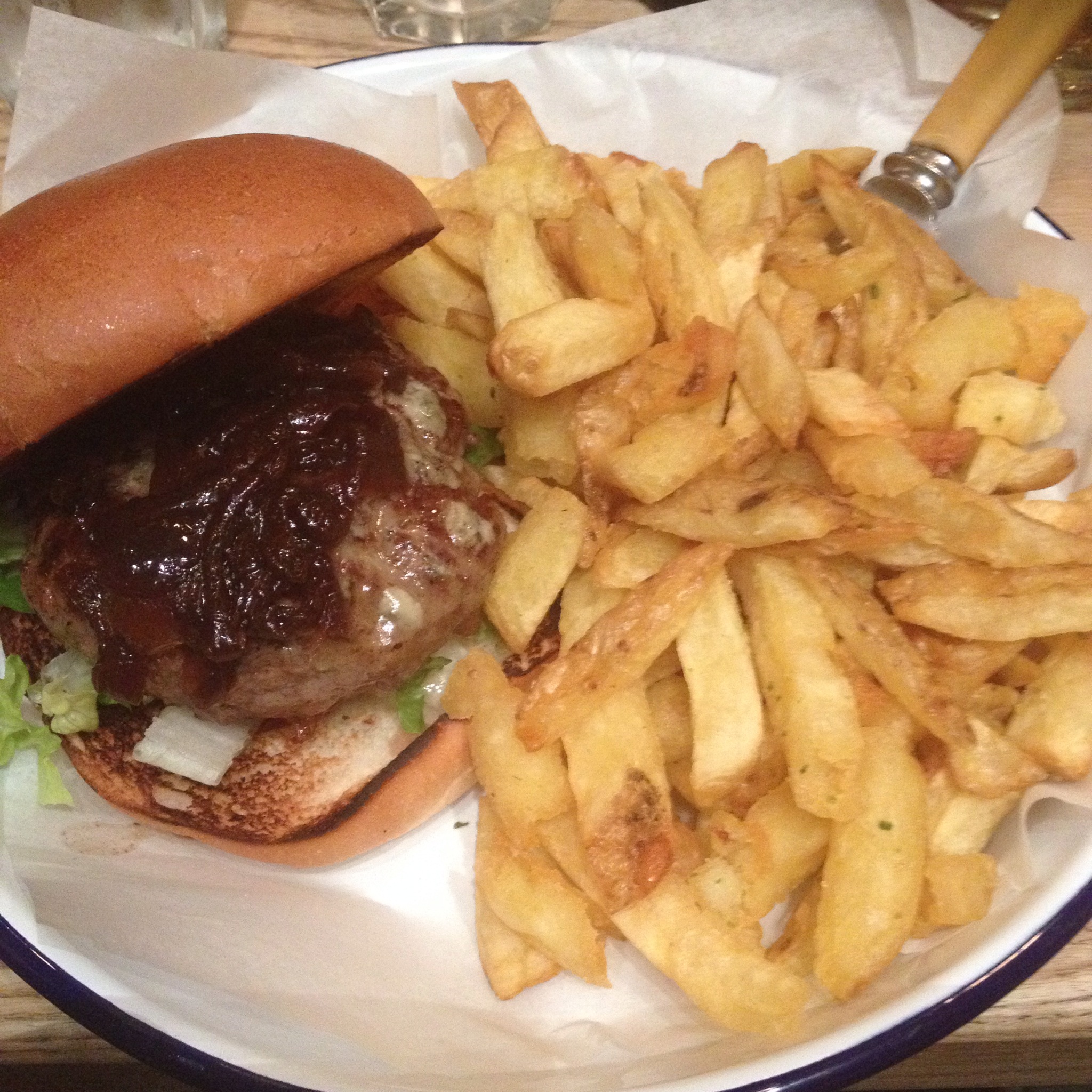 It didn’t disappoint, the burger was very tasty, the chips are seasoned (if not a little too heavily) with rosemary and the atmosphere is great.