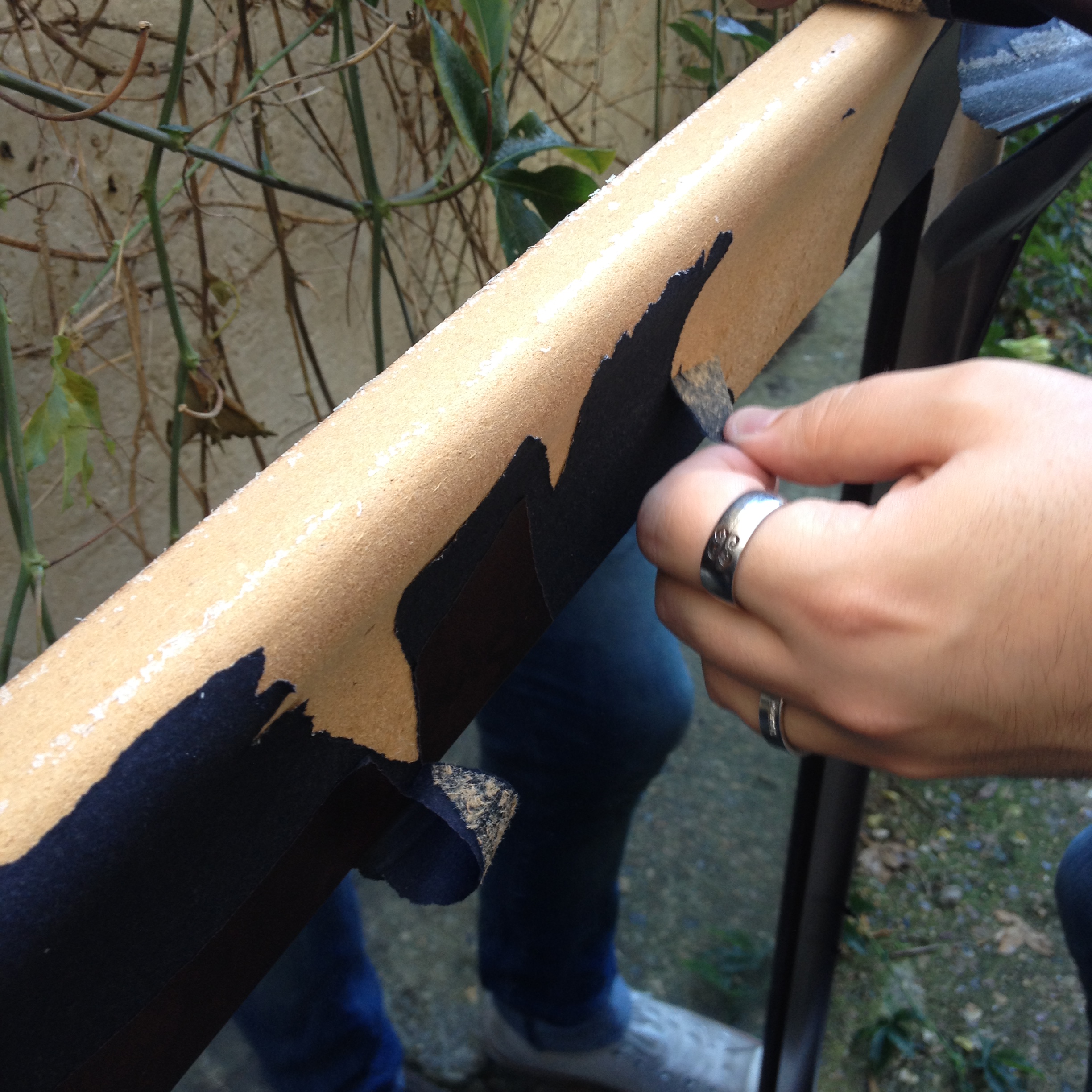 We initially thought it would simply be a case of peeling it away but as we got going we realised that their was an under layer of paper which had been glued down. With big sighs we got going putting our poor little thumb nails to good use and scraping away. Taylor Swift’s new album kept us in high spirits (it’s good by the way) and slowly but surely we managed to expose the natural frame.