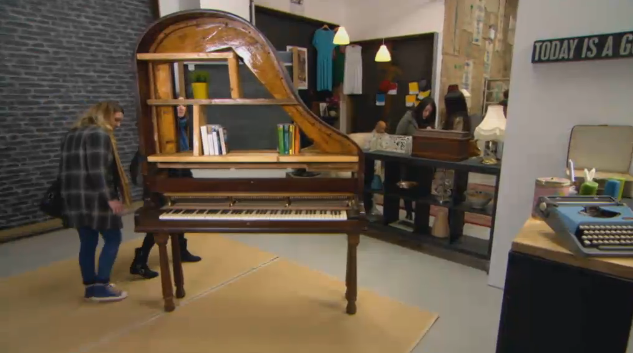 One of our favourite of Max’s up-cycles was this piano which he reinvented in to a bookshelf on Kirstie’s Fill Your House For Free.